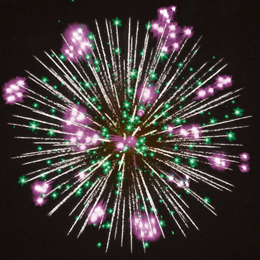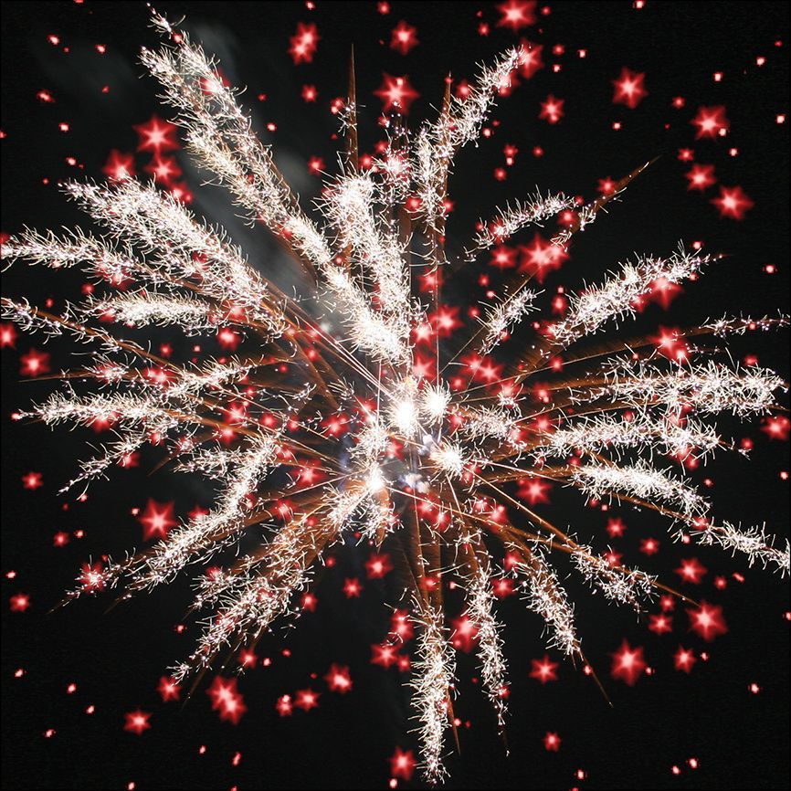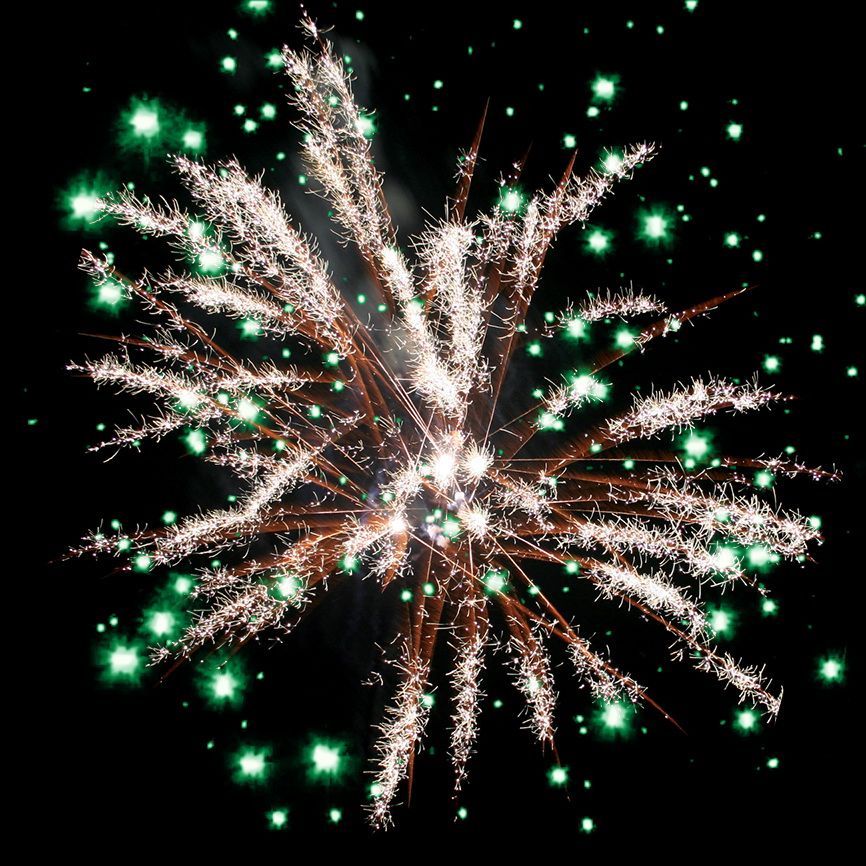 3-4. серебряных с трещащими искрами, серебряных форсов, фиолетовых и зелёных мерцающих огней;